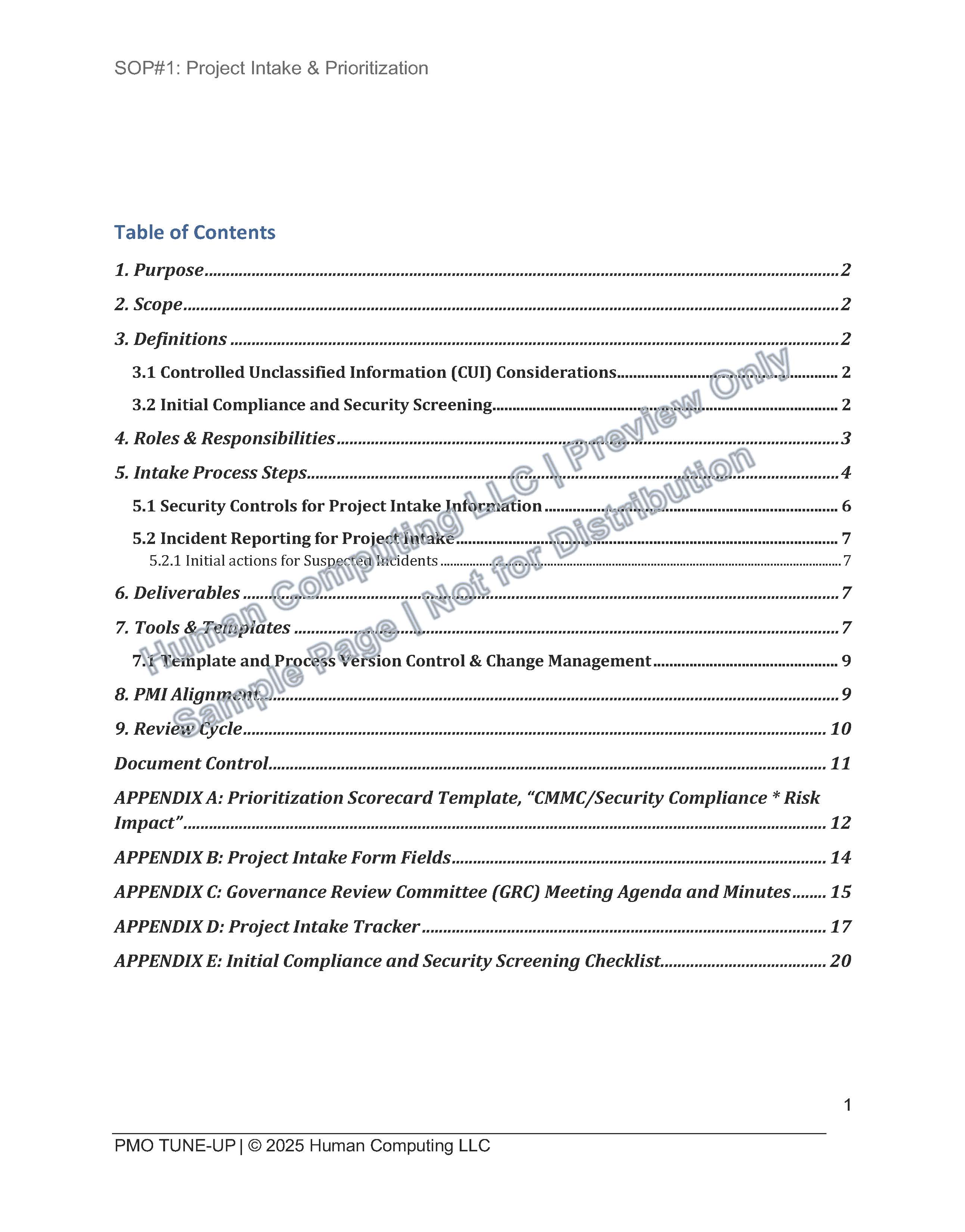 Every SOP & template in every package is streamlined to the essentials - nothing extra, nothing fluffy. Each is designed to be both PMI-aligned and CMMC-conscious, so that your project delivery teams get tools they can tryst to meet professional standards and compliance expectations without overwhelming your team.